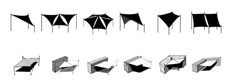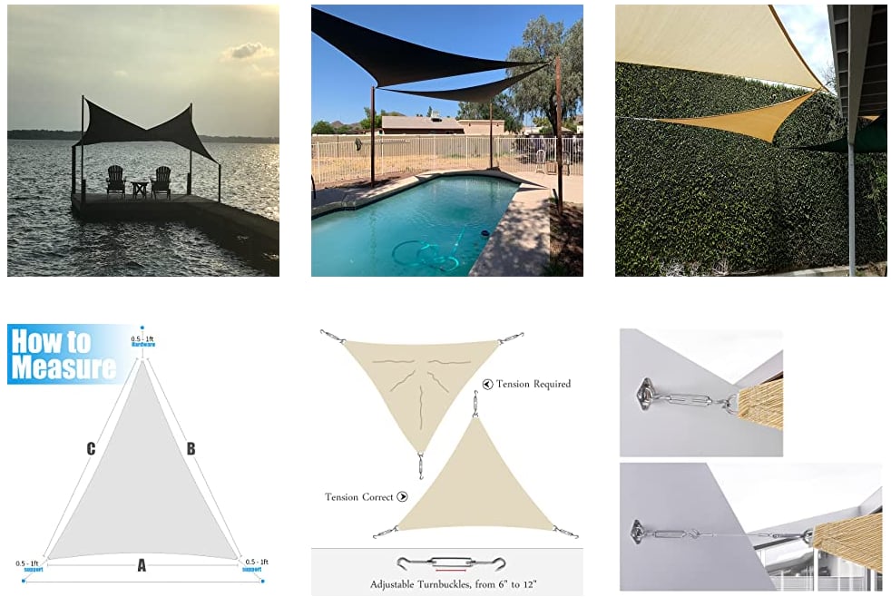 - Sunshade sails have curved sides to enhance pull strength and prevent drooping. (Middle-center of the sun shade will be shorter in width due to curves)